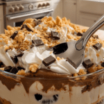 A layered dessert combining moist chocolate cake, velvety pudding, fluffy Baileys-inspired cheesecake, and a crunchy base. Perfect for special occasions with a luxurious flavor profile.