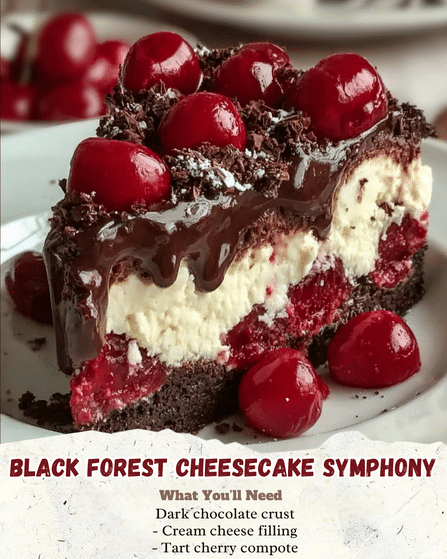 If you adore the rich flavors of chocolate and cherries, this Black Forest Cheesecake Symphony will be your new favorite dessert! Combining the classic taste of Black Forest cake with the creamy indulgence of cheesecake, this treat is perfect for special occasions or whenever you crave something luxurious.