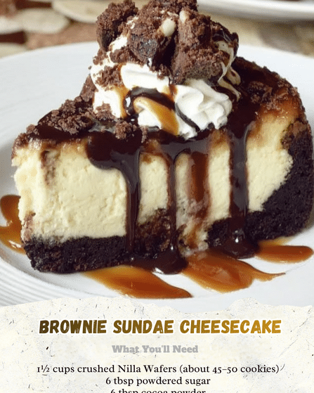 This Brownie Sundae Cheesecake is a dreamy mashup of two iconic desserts, guaranteed to satisfy any sweet tooth. Try it for your next gathering—it’s a showstopper! 🍫🍦