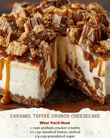 Indulge in the ultimate dessert experience with this Caramel Toffee Crunch Cheesecake! Creamy cheesecake meets a buttery crust, topped with luscious caramel and crunchy toffee bits for a perfect balance of textures and flavors. It’s rich, luxurious, and guaranteed to impress at any gathering.