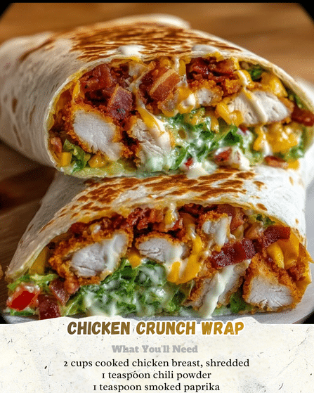 This Chicken Crunch Wrap is irresistibly crispy and full of delicious fillings—ready in just minutes! Try it today and make every bite count. 😋👌