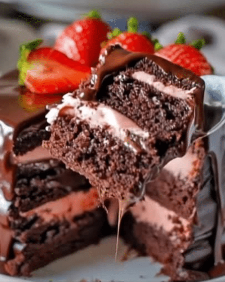 This Chocolate Cake with strawberry filling dessert is pure bliss! The rich cocoa pairs perfectly with the tangy-sweet strawberries, creating a show-stopping treat. Bake it, share it, and watch everyone fall in love! ❤️