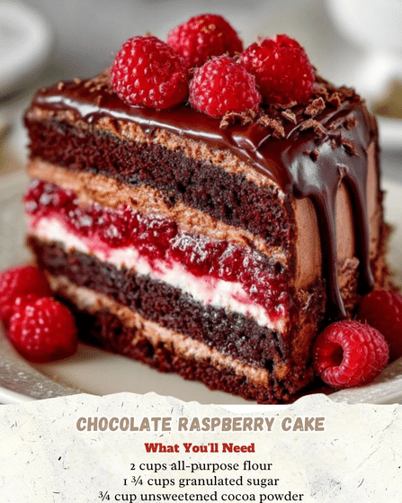 This Chocolate Raspberry Cake is a dreamy fusion of flavors and textures—perfect for impressing guests or treating yourself. Simple steps yield bakery-worthy results. Bake it, savor it, and watch it disappear! 🍫🍰