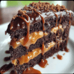 Drizzle the remaining caramel sauce over the cake, letting it drip naturally down the sides for a dramatic finish.