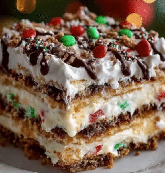 This simple yet celebratory dessert is ideal for busy holiday schedules because it requires no baking, no complicated techniques, and can even be prepared ahead of time. Whether you’re hosting a holiday gathering, attending a party, or simply want a fun dessert for a cozy December night, this Christmas Cookie Lasagna brings cheer to every slice.