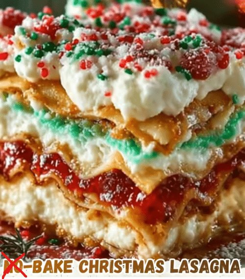No-Bake Christmas Lasagna is a comforting, flavorful dish layered with tender noodles, creamy ricotta, melted mozzarella, and rich marinara sauce. With the option to add Italian sausage and fresh spinach, it’s hearty enough for family dinners yet elegant enough for entertaining. Preparing it ahead of time allows the flavors to meld beautifully, making each bite even more satisfying.