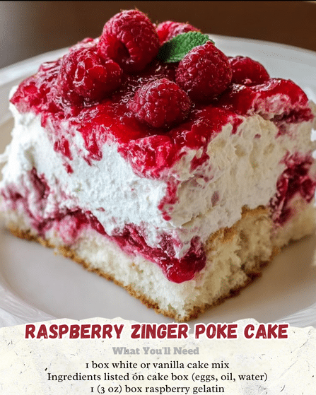 This Raspberry Zinger Poke Cake is a showstopper—simple, stunning, and bursting with flavor! It’s a nostalgic dessert with a fresh upgrade that’s sure to impress. Try it today and watch it disappear! 💖