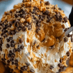 - Before serving, roll the cheese ball in mini Reese’s pieces or chocolate chips for coating.