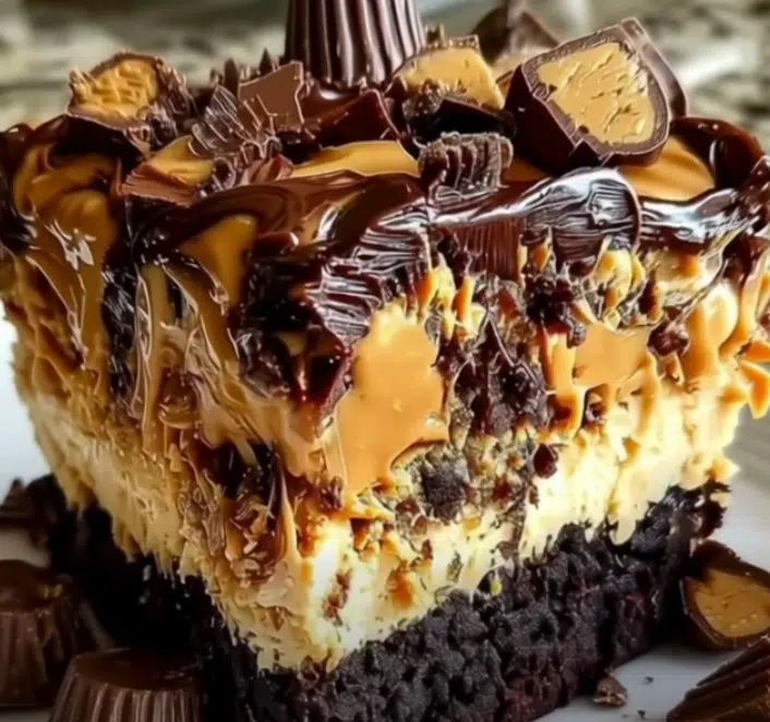 This recipe starts with a convenient chocolate cake mix, making it quick and beginner-friendly. The cream cheese and peanut butter swirl adds richness and contrast, while Reese’s cups and chocolate chips turn this into a show-stopping dessert perfect for parties, potlucks, or weeknight treats.