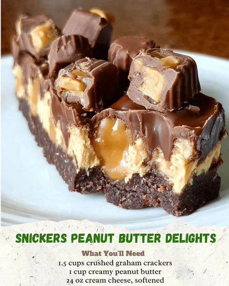 Indulge in the perfect fusion of rich chocolate, creamy peanut butter, and crunchy peanuts with these Snickers Peanut Butter Delights! These no-bake treats are quick to make, require minimal ingredients, and deliver the irresistible flavor of a Snickers bar with an extra peanut butter twist. Whether you’re craving a sweet snack or need a crowd-pleasing dessert, these delights are a guaranteed hit.