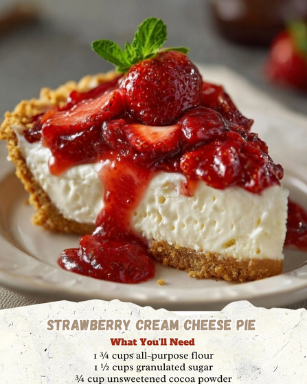 This strawberry cream cheese pie is a crowd-pleaser with its rich, creamy filling and juicy strawberry topping. It’s simple to make yet looks stunning, making it perfect for any occasion. Give it a try—you’ll be coming back for seconds! 🍓✨