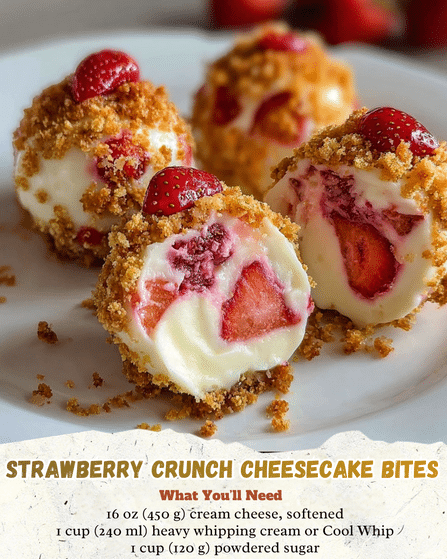 🍓 Strawberry Crunch Cheesecake Bites – A Burst of Deliciousness!